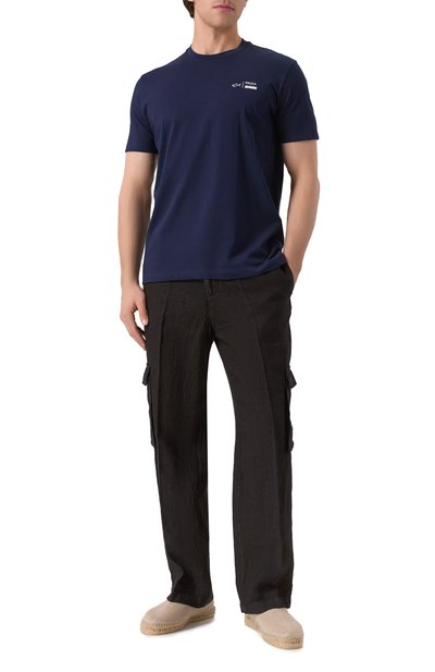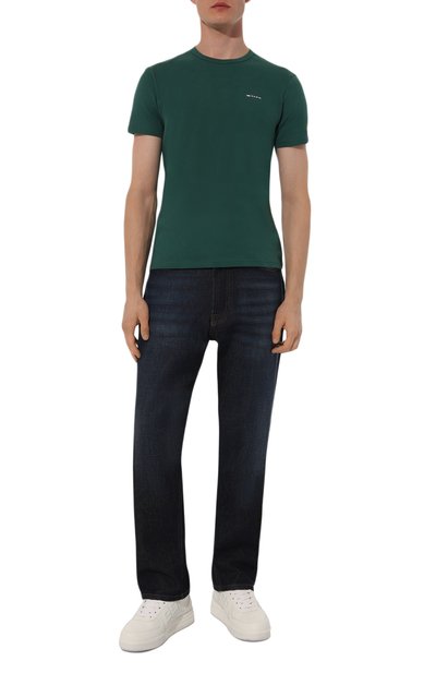 Для пошива футболки насыщенного изумрудного цвета использовали мягкое джерси из отборного хлопка. Его волокна тоньше, прочнее и эластичнее обычного, а в гладкости не уступают шелку, поэтому изделие комфортно садится по фигуре и долго не теряет безупречный вид. Принадлежность модели бренду Доменико Дольче и Стефано Габбана деликатно обозначили фирменной металлической пластиной с выгравированным логотипом.