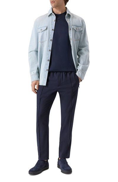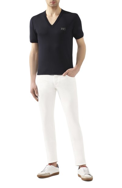 Синюю футболку из коллекции Essential сшили из мягкого хлопкового джерси. Материал с плотным переплетением тонких нитей хорошо пропускает воздух и приятно ощущается на теле, обеспечивая комфорт в течение всего дня. Доменико Дольче и Стефано Габбана украсили спереди модель знаковой для бренда короной и пчелой, вышитыми мерцающими металлизированными нитями.