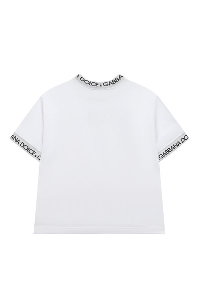 Белоснежная футболка прямого кроя выполнена из гладкого тонкого хлопка джерси. Приятный на ощупь гипоаллергенный материал отлично пропускает воздух, а плоские незаметные швы не раздражают кожу. Модель с короткими рукавами и круглым вырезом украшена черным логотипом марки.
