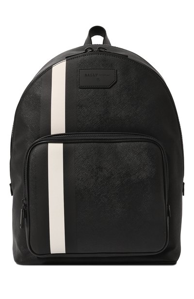 Черный рюкзак с широкими текстильными ремнями и мягкой сетчатой вставкой сшит из прочного матового материала, напоминающего сафьяновую кожу. Аксессуар украшен широкой двухцветной лентой и патчем с логотипом марки, основанной Карлом Францем Балли. Во внутреннее отделение поместятся бумаги формата А4 и планшет, во внешний карман — смартфон и кошелек.