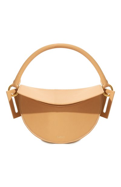 Придумывая форму сумки Dip, Наза Юсефи вдохновлялась абстрактным искусством. Для изготовления бежевой модели с одной жесткой ручкой и утрированно широким съемным ремнем дизайнер выбрала гладкую кожу с деликатным блеском. В основное отделение, закрывающееся клапаном с магнитной кнопкой, поместятся смартфон, кошелек и футляр с очками.
