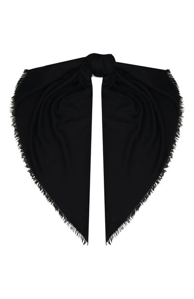 Темно-синий платок выглядит предельно лаконично. Роль единственного декора отдали короткой однотонной бахроме, которой подчеркнули края. Для изготовления модели мастера марки использовали тонкий легкий хлопок, который хорошо драпируется и быстро возвращает форму после развязывания.