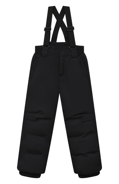 В черных брюках, утепленных пухом с добавлением пера, ребенку будет комфортно на прогулке в переменчивую погоду. Для пошива изделия с широкими регулируемыми лямками мастера марки использовали непродуваемый водоотталкивающий полиэстер. Модель дополнили эластичными поясом и манжетами.