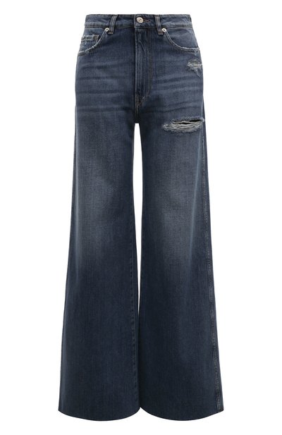 Синим расклешенным джинсам дизайнеры марки придали вид вещи с историей, украсив их крупными заломами и потертостями. Для изготовления модели с V-образной кокеткой сзади использовали фактурный выбеленный хлопок. Материал с плотным переплетением нитей почти не мнется.