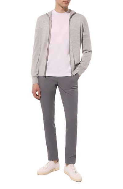 Серые джоггеры сшили из прочного трикотажа на основе органического хлопка. Он хорошо пропускает воздух и кажется особенно мягким на ощупь. Но главное — его вырастили и обработали без применения токсичных химикатов. Модель с поясом-кулиской, позволяющим регулировать посадку на талии, украсили небольшим патчем с эмблемой бренда.