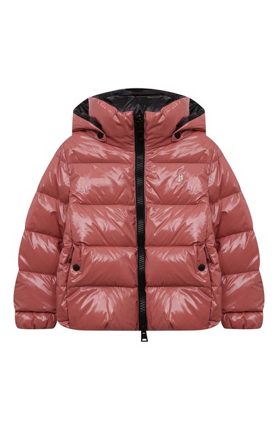 Розовая куртка выручит в переменчивую погоду. Модель сшили из легкого лакированного нейлона, который не продувается ветром и отталкивает мелкие капли дождя. Такую же прочную ткань использовали для изготовления съемного капюшона. Изделие, застегивающееся встречной молнией, утеплили гусиным пухом с добавлением пера.