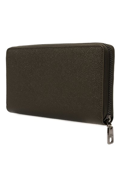 Портмоне оттенка хаки украсили серебристой знаковой пластиной с выгравированным логотипом. Для изготовления модели использовали мягкую те лячью кожу Dauphine с характерной зернистой фактурой, отполированной вручную до деликатного блеска. Внутри предусмотрели шесть слотов для кредитных карт и отделения для купюр и чеков.