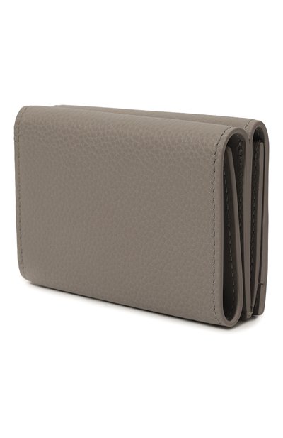 Портмоне оттенка хаки украсили серебристой знаковой пластиной с выгравированным логотипом. Для изготовления модели использовали мягкую телячью кожу Dauphine с характерной зернистой фактурой, отполированной вручную до деликатного блеска. Внутри предусмотрели шесть слотов для кредитных карт и отделения для купюр и чеков.