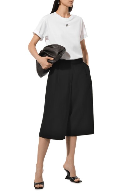 Доменико Дольче и Стефано Габбана сделали белоснежную футболку с короткими рукавами настолько лаконичной, насколько это возможно для них. Дизайнеры декорировали модель только миниатюрной серебристой DG-монограммой со сверкающими полупрозрачными кристаллами. Для пошива изделия использовали мягкое хлопковое джерси, которое почти не ощущается на теле.
