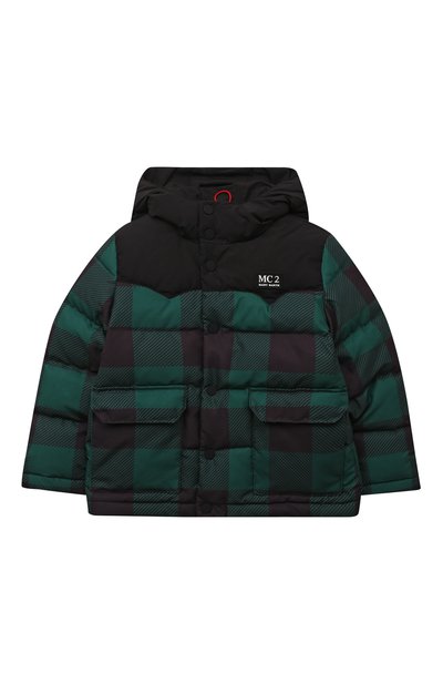 Мастера марки сшили зеленый клетчатый пуховик из прочного полиэстера, который в равной степени защитит от ветра и мокрого снега. Чтобы в стеганой куртке было комфортно в морозный день, ее утеплили слое м почти невесомых утиных пуха и пера. Модель с капюшоном украсили изображением Снупи в красном пуховике и желтой шапке.