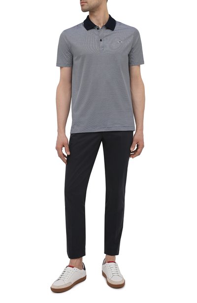 В черно-белом поло соединили черты классической модели и джемпера, позаимствовав у второго как характерные манжеты, так и материал. Для изготовления модели в узкую полоску использовали приятный на ощупь хлопковый трикотаж. Его выполнили эластичной вязкой из ультрадлинных волокон премиального качества, поэтому изделие немного тянется и комфортно садится по фигуре.