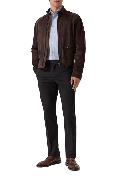 Темн о-коричневые оксфорды с миндалевидным мысом сшили из мягкой зернистой кожи тонкой выделки. Мастера марки, основанной Джузеппе Баракко, вручную окрашивали и полировали туфли, чтобы придать им деликатный блеск и сформировать патину. Со временем она проявит себя ярче, сделав модель по-настоящему уникальной.