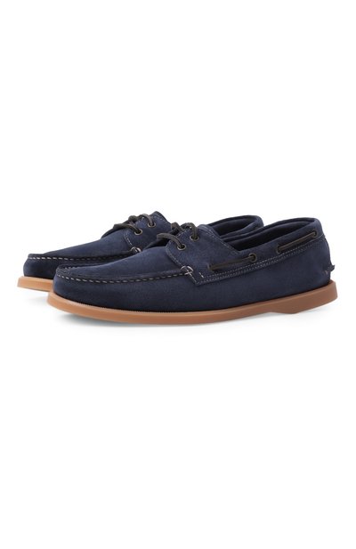 Широкую подошву топсайдеров декорировали тисненым логотипом марки. В прорези вдоль верхнего края продели шнурок. Пара выполнена вручную из мягкой зернистой кожи с легким матовым блеском.