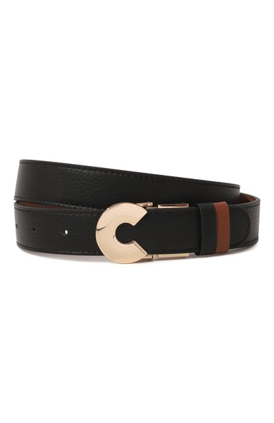 Двусторонний ремень громко говорит о своей принадлежности бренду при помощи крупной пряжки в виде литеры С, отполированной до глянцевого блеска. Внимание от такой детали не отвлекает мягкая прочная кожа с крупнозернистой фактурой, которая не боится заломов и повреждений.
