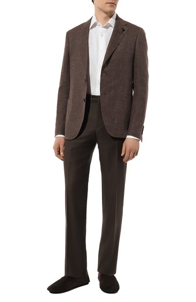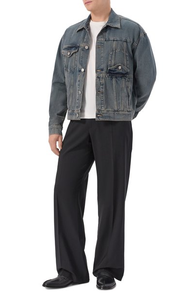 Для изготовления черных слиперов с широкой перемычкой, как у лоферов, использовали прочную крупнозернистую кожу с матовым блеском. Легкую, но прочную модель, сшитую по технологии Sacchetto, установили на резиновую подошву из раздельных блоков, поэтому она получилась гибкой и максимально комфортной. Обработка специальными щетками придала паре слегка состаренный вид.