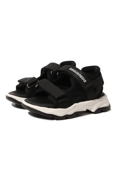 Черные сандалии сшили из эластичного сетчатого текстиля, пропускающего воздух. Стелька анатомической формы обеспечивает правильное положение стопы при ходьбе, а массивная амортизирующая подошва снижает нагрузку на суставы. За комфортную посадку обуви по ноге отвечают ремешки с застежками велькро.