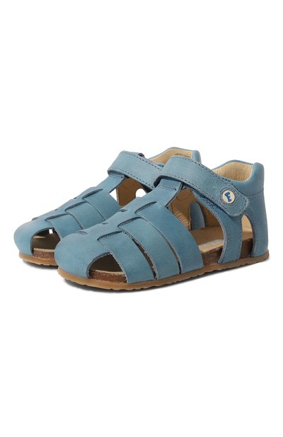 Голубые сандалии с высоким упругим задником изготовлены из мягкой гладкой кожи с матовым блеском. Обувь с застежкой велькро дополнена анатомической стелькой, которая правильно распределяет нагрузку на суставы и способствует правильному развитию детской стопы.