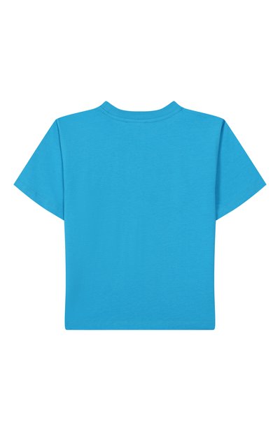 Легкую футболку насыщенного синего оттенка украсили контрастным принтом в виде логотипа. Для пошива модели использовали эластичный тонкий трикотаж из тщательно очищенного хлопка, хорошо пропускающего воздух. Изделие с короткими рукавами приятно ощущается на коже и обеспечивает свободу движения.