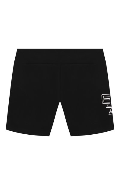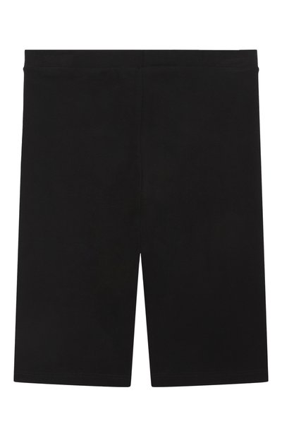 Черные шорты с узким поясом-резинкой сшиты из приятного на ощупь хлопкового джерси с гладкой матовой поверхностью. Гипоаллергенный эластичный материал хорошо пропускает воздух, а плоские швы не раздражают кожу. Однотонные велосипедки украшены сбоку крупным белым логотипом марки.