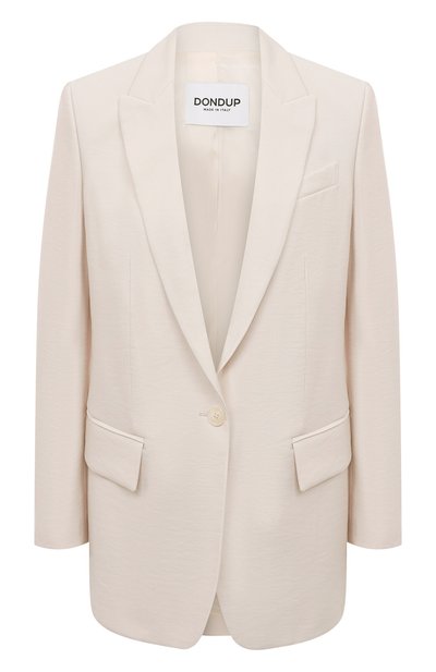 Однобортный пиджак кремового оттенка подружится с вещами как ярких, так и базовых цветов. Для пошива модели с широкими лацканами мастера марки использовали фактурный текстиль на основе шелковистой вискозы. Материал с особенно плотным переплетением волокон почти не мнется, поэтому изделие выглядит безупречно в течение дня.