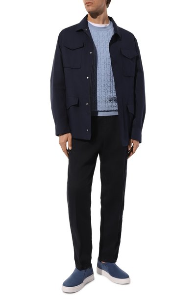 Для изготовления темно-зеленых слипонов мастера марки, основанной Стефано Риччи, использовали мягкую пластичную замшу. Обувь из такого бархатистого материала плотно облегает стопу, не сковывая ее движения. Края фигурной союзки, выреза и задник подчеркнули отделкой из матовой кожи в тон.