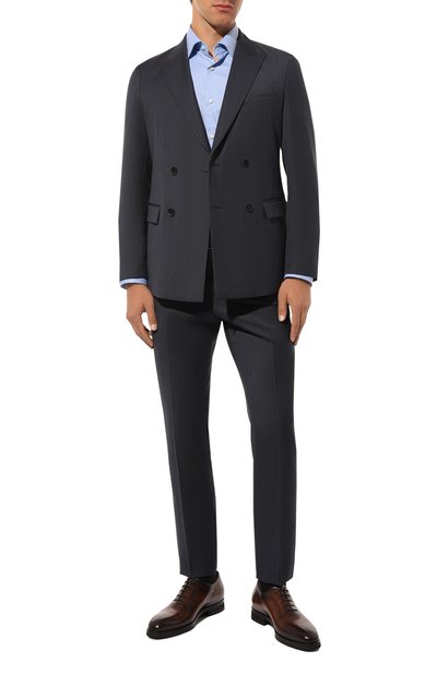 Оттенок темного шоколада поможет оксфордам подружиться и с темным, и со светлым костюмом. Для изготовления модели с миндалевидным мысом использовали мягкую гладкую кожу, отполированную до глянцевого блеска. За счет технологии Blake Rapid туфли получились легкими, гибкими и при этом прочными.