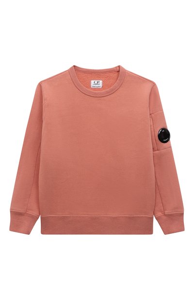 В розовом свитшоте с круглым вырезом ребенку будет комфортно в течение всего дня. Модель выполнили из мягкого хлопкового флиса, который сохраняет тепло, но пропускает воздух. Принадлежность изделия бренду обозначили фирменной линзой, которую разместили на левом рукаве.