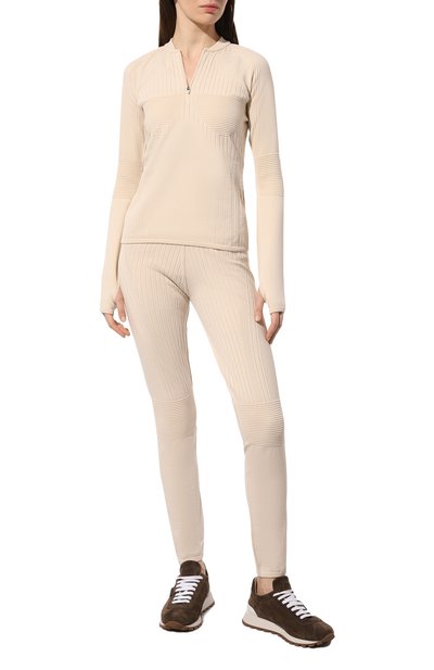Для изготовления легинсов использовали тонкий эластичный трикотаж на основе кашемира. Изделие из такого дышащего легкого материала плотно облегает фигуру и отлично сохраняет тепло.