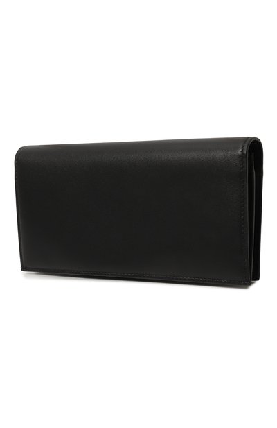 Принадлежность черного портмоне марке обозначили объемным узором с тисненым логотипом, который разместили на передней панели. Компактный аксессуар выполнили вручную из прочной фактурной кожи. Модель состоит из отсека для банкнот и шести слотов для кредитных карт.
