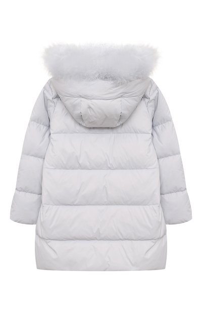 Снежно-белое стеганое пальто наполнено отборными утиными пухом и пером, поэтому не позволит замерзнуть на зимней прогулке. Легкий утеплитель заключен между двумя слоями нейлона, который не выпустит теплый воздух наружу и не даст холодному проникнуть внутрь. От ненастья защитит и капюшон, отделанный густым мехом козлика в тон.