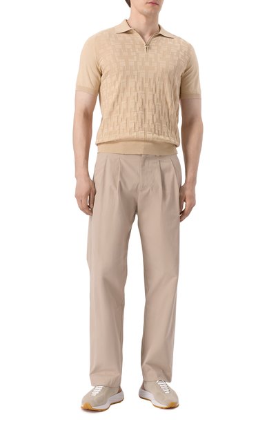 Кроссовки кремового оттенка мастера марки, основанной Брунелло Кучинелли, выполнили из плотного фактурного трикотажа. Эластичный материал комфортно облегает стопу, повторяя все ее движения, и хорошо пропускает воздух. Модель дополнили легкой подошвой из полимера ЭВА, который плавно амортизирует при ходьбе, снижая нагрузку на ноги.