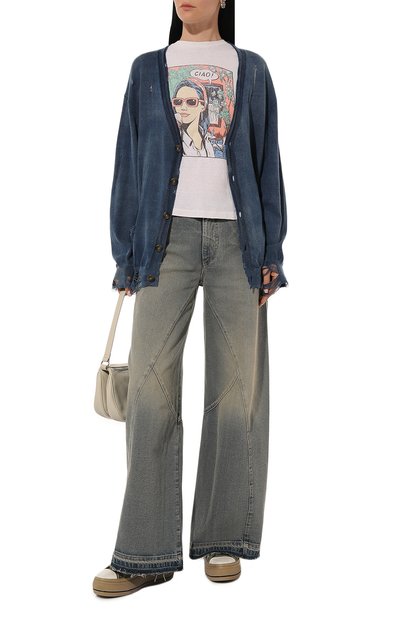 Словно слегка выцветший от времени принт в стиле поп-арт придает белой футболке винтажный вид. Для пошива модели с короткими рукавами мастера марки использовали мягкое хлопковое джерси. Вещь из такого приятного на ощупь материала хорошо пропускает воздух и не сковывает движения, поэтому в ней будет комфортно весь день.