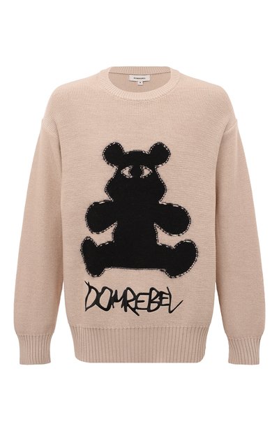 Бежевый цвет свитера стал идеальным фоном для крупного черного узора, в котором читается силуэт медведя. Мотив поддержали логотипом бренда в тон, вышитым спереди шелковистыми нитями. Для изготовления модели мастера марки использовали мягкую пряжу на основе шерсти и хлопка.