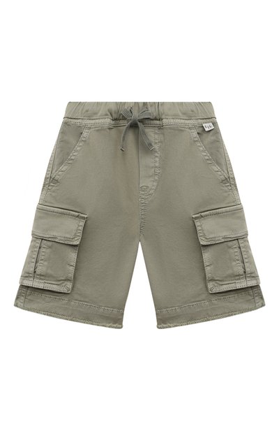 Для пошива зеленых шорт мастера марки использовали тонкий хлопковый габардин. Легкий, но прочный материал не мешает коже дышать, поэтому ребенку в такой модели будет комфортно в течение дня. Изделие с регулируемым поясом-кулиской дополнили по бокам накладными карманами, как у карго.