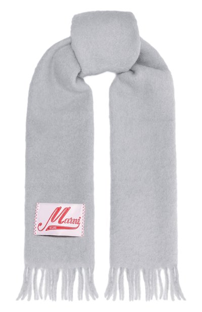 Шарф изготовили из исключительно приятной на ощупь шерсти альпака. Нити нейлона в составе пряжи не дают аксессуару потерять форму со временем. Широкую модель с длинной бахромой по краям украсили брендированным патчем.