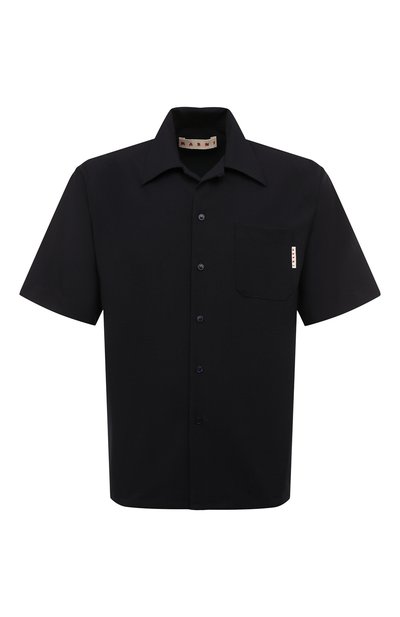 Создавая темно-синюю рубашку, дизайнеры марки вдохновлялись униформой для боулинга. Свободную модель с короткими широкими рукавами сшили из мягкой шелковистой шерсти, которая почти не мнется и не вытягивается со временем. Сочетать изделие, украшенное брендированной нашивкой на накладном кармане, предлагаем с брюками в тон и белыми футболкой и кедами.