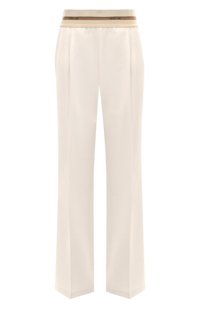 Крой и материал делают кремовые брюки со стрелками комфортными, как спортивная одежда. Тонкая шерстяная ткань с добавлением эластана немного тянется, а полосатый пояс из тянущейся брендированной ленты, как у леггинсов, мягко ложится на талию и не давит. Модель в исполнении команды марки, основанной Хельмутом Лангом, наши стилисты предлагают носить с контрастными жилетом и босоножками.