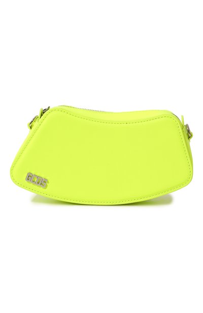 Фигурную сумку неоново-желтого цвета сшили из гладкой прорезиненной кожи, которой не страшны царапины, потертости и загрязнения. Такой же прочный, но гибкий и мягкий материал использовали для создания широкого съемного ремня. У аксессуара, вмещающего картхолдер и телефон, есть секрет: петли на задней панели помогают носить его на поясе.