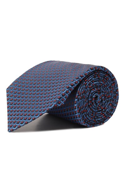 Синий галстук с геометрическим узором поможет освежить образ в нейтральной гамме. Мастера марки сшили модель из мягкого прочного шелка с характерным атласным блеском. Шов сзади выполнили вручную, поэтому аксессуар сох раняет четкую форму.