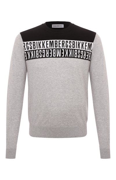 Серый меланжевый джемпер украсили контрастными черно-белыми вставками, переднюю из которых выделили логотипом бренда и его зеркальным отражением. Для изготовления модели мастера марки использовали мягкий хлопковый трикотаж, который хорошо пропускает воздух и не стесняет движения.