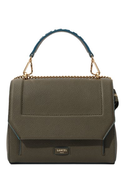 Сумка из зерненой яловой кожи универсального цвета хаки поддержит образы в самой разной гамме. Ярко-голубая отделка делает силуэт графичным и вносит необходимый цветовой акцент. Съемная ручка декорирована крупной контрастной аппликацией-логотипом. Под клапаном с магнитной кнопкой скрыт внешний карман на молнии, внутри основного отделения — еще два. В изделии хватит места для бумаг формата А5, кошелька и смартфона.