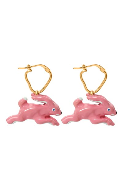 Вдохновившись символом года по восточному календарю, команда марки создала серьги с подвеской в виде розового зайца, вручную раскрашенного глянцевой эмалью. Для изготовления украшения использовали прочный ювелирный сплав с гальваническим покрытием золотом.