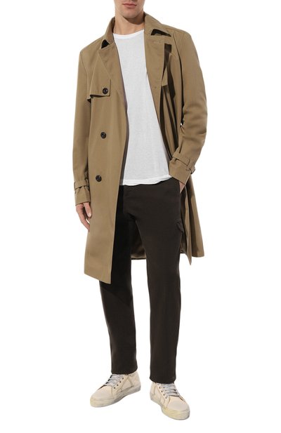 Для создания белой футболки с короткими рукавами Джеймс Пирс выбрал японское джерси, связанное из тончайшего хлопка пима. У него исключительно длинные и при этом прочные волокна, поэтому дышащий материал получился особенно приятным на ощупь. Трикотаж слегка тянется, поэтому окрашенная в готовом виде модель не сковывает движения.
