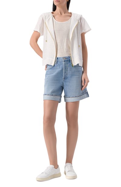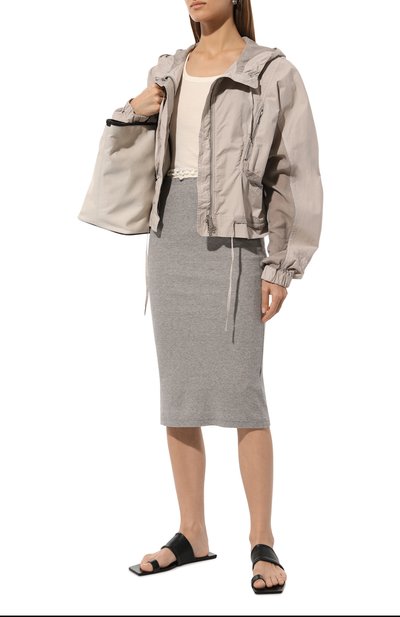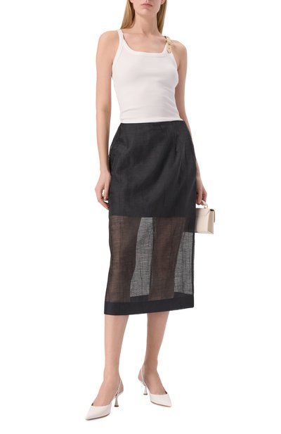 Майку на широких бретелях выполнили из хлопкового трикотажа в рубчик. Модель с глубоким U-образным вырезом можно носить как топ, а в прохладный день — как дополнительный слой под свитером.