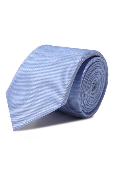 Голубой галстук поможет освежить палитру делового гардероба. Для изготовления модели мастера марки использовали прочный фактурный шелк с деликатным блеском. Задний шов выполнили вручную, сделав его эластичным, поэтому аксессуар не перекручивается и хорошо держит форму.