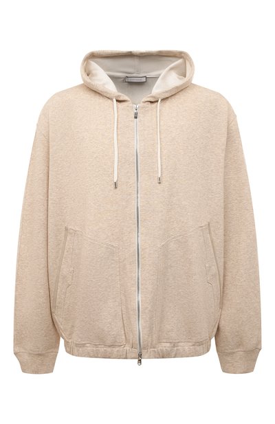 Каждая деталь этой толстовки с металлической молнией создана с учетом комфорта: широкие эластичные манжеты и пояс, глубокий капюшон с кулиской, крупные накладные карманы, мягкий материал. Изделие сшили из меланжевого трикотажа на основе хлопка, который идеально пропускает воздух. Такая модель хорошо впишется в расслабленный бежевый total look с джинсами, кедами и футболкой.