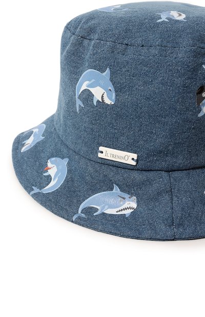 Панаму с прямыми стегаными полями делает по-настоящему уникальной синий абстрактный рисунок, выполненный в технике тай-дай: повторить его в точности не получится даже специально. Для пошива модели использовали мягкую хлопковую ткань, не препятствующую циркуляции воздуха и быстро впитывающую влагу.