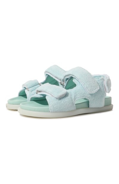 Пастельно-голубые сандалии из мягкого махрового хлопка терри умеют точно подстраиваться под особенности детской ноги. Адаптироваться к меняющимся пропорциям позволяют три застежки велкро на союзке, подъеме и пятке. Поддержать свод стопы в правильном положении помогает широкая анатомическая подошва.