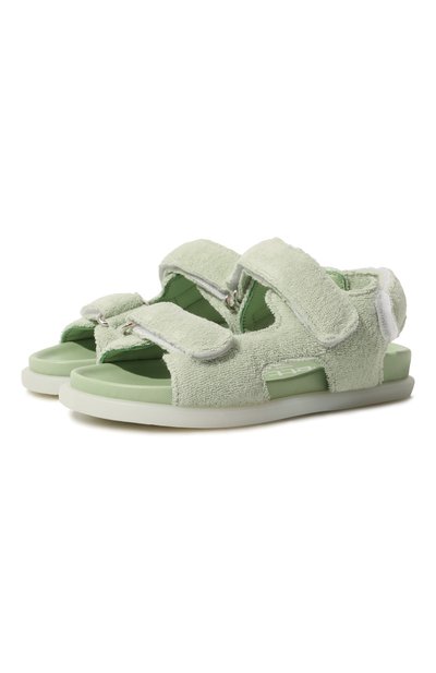 Команда марки продумала дизайн зеленых сандалий так, чтобы в них было комфортно самым маленьким. Анатомическая подошва помогает стопе правильно развиваться, дышащий хло пок терри поддерживает оптимальную температуру, а гладкая внутренняя отделка не раздражает чувствительную кожу. Пара дополнена тремя застежками велкро, поэтому малыш сможет научиться обуваться самостоятельно.