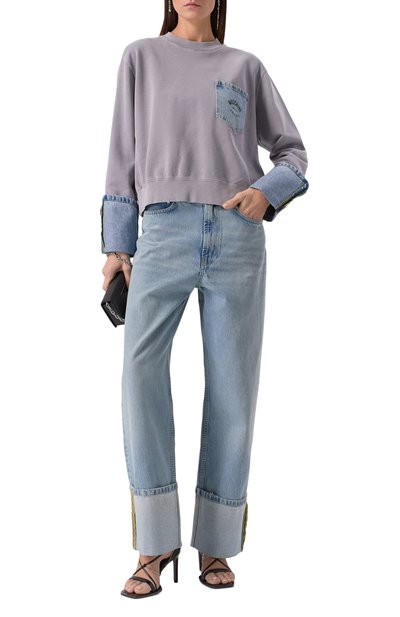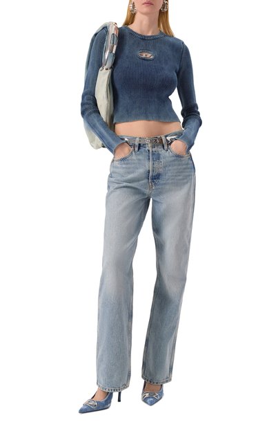 Потертости, разрывы и выбеленный эффект делают прямые джинсы расслабленнее аналогов и придают им сходство с винтажными брюками. Для пошива модели использовали мягкую хлопковую ткань средней плотности. Заданную изделием непринужденность наши стилисты предлагают поддержать в многослойном образе футболкой, рубашкой, косухой и казаками.